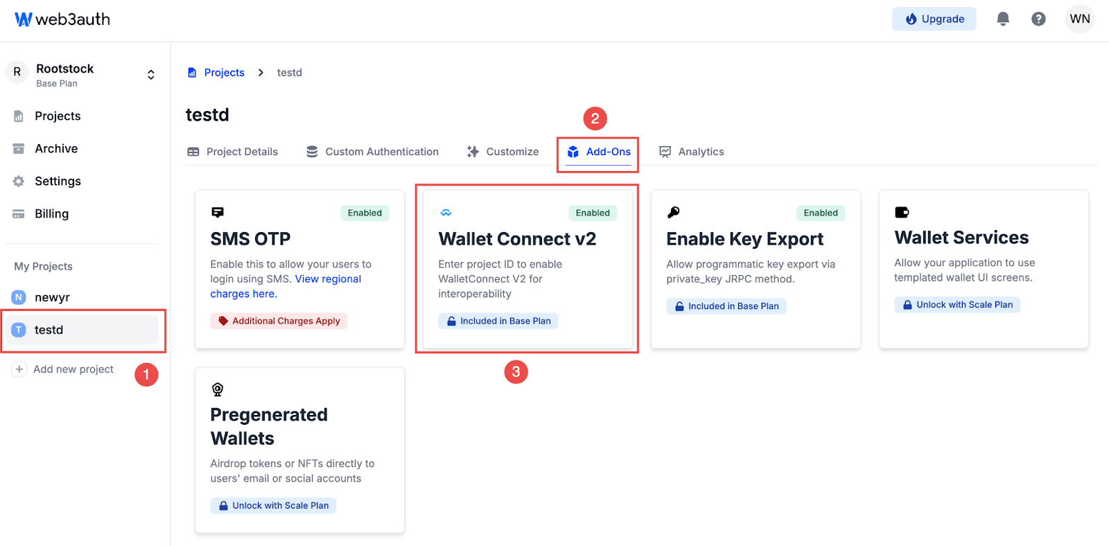 The [blockchain trilemma](https://www.coinbase.com/en-gb/learn/crypto-glossary/what-is-the-blockchain-trilemma) states that a blockchain can only optimally achieve two out of three desirable properties: decentralization, security, and scalability. This inherent limitation often translates into challenges for dApp developers and, more importantly, for users. It complicates user onboarding (setting up wallets and acquiring cryptocurrency), makes interactions cumbersome (managing wallets and transaction fees), raises security concerns (protecting private keys), and can lead to slow performance due to transaction speeds and fees which directly impacts the user experience of dApps. Web3Auth bridges this gap by offering a streamlined Single Factor Authentication (SFA) solution that simplifies user onboarding and wallet connections on Rootstock. Whether you're developing a decentralized application (dApp) for experienced crypto users or beginners new to blockchain, Web3Auth makes user interactions intuitive and secure. By the end of this guide, you will learn how to use the starter kit to integrate Web3Auth and configure your dApp for Rootstock. ## Who is this guide for? This guide is designed for developers who: * Are new to blockchain development and want to build user-friendly decentralized applications (dApps). * Have experience with JavaScript and frameworks like Next.js but are unfamiliar with integrating blockchain functionalities. * Want to simplify authentication and onboarding for their dApps using Web3Auth. ## Why use Web3Auth? Web3Auth enhances the dApp experience: 1. Enhanced User Experience * Provide passwordless logins, eliminating the need for users to remember complicated credentials. * Simplify wallet management for both technical and non-technical users. 2. Secure Authentication * Implement robust Single Factor Authentication to protect user data and assets. 3. Seamless Blockchain Interaction * Enable direct integration with Rootstock blockchain using Wagmi, optimizing interactions like transaction signing and contract interaction. ## Prerequisites Before getting started, ensure to have the following tools installed: 1. Node.js * Install **Node.js** (version **19.x** or later recommended). * Verify your installation by running: ```shell node -v ``` 2. Package Manager (Yarn or Bun) * Use Yarn (preferred for Next.js projects) or Bun for package management. * Install Yarn globally using: ```shell npm install -g yarn ``` Confirm installation: ```shell yarn -v ``` 3. Fund Your Rootstock Blockchain Wallet * **Get test rBTC (tRBTC)** from the [Rootstock Faucet](https://faucet.rootstock.io/) to fund your test account. 4. Web3Auth Account * Sign up on the [Web3Auth Dashboard](https://web3auth.io/). * Create a project to generate your **unique Client ID**. * Keep your **Client ID** handy for integration. 5. WalletConnect Account * Sign up on [WalletConnect Cloud](https://cloud.walletconnect.com/). * Create a project and obtain your **WalletConnect Project ID**. ## Set up the Project To set up the sample dApp project, follow the steps below: ````mdx-code-block - After creating a project, view the project details screen. - Copy the Client ID from the dashboard. This will be used for initializing Web3Auth. 2. Add Client ID in page.tsx - Open `page.tsx` file in your project. - Copy and paste the copied Client ID into the appropriate configuration field in your code. 3. Create a .env.local File - In the root directory of your project, create a file named `.env.local`. - Use this env file to store sensitive project information, including the client secret and Project ID. ```shell NEXT_PUBLIC_WEB3AUTH_CLIENT_ID=your-client-id ``` 4. Get the WalletConnect Project ID - Visit https://cloud.reown.com/ and create a WalletConnect project if you don’t already have one. - Copy the **Project ID** provided by WalletConnect. 5. Add WalletConnect to Web3Auth * Go to the Web3Auth dashboard, and navigate to `Dashboard > Project > Add-ons` * Select WalletConnect v2 and input the WalletConnect Project ID. Save changes. Ensure all configurations are saved in the Web3Auth dashboard and project files. ```` ## Interacting with the dApp 1. Click the "Log In / Sign Up" button. 2. A Web3Auth authentication modal will appear, offering multiple sign-in options: * Social logins: Google, Facebook, Reddit, Discord, and others. * Phone number or email authentication. * Wallet-based authentication (connect with a crypto wallet). * Once logged in, your connected wallet address will be displayed at the top. > Tip: You can copy your wallet address by clicking on the copy icon next to it. 3. Choose a Login Method * Select the preferred login method from the available options. * Follow the on-screen instructions to authenticate. 4. Successfully Sign In * Once authenticated, you will be redirected to a new screen. * This screen will allow you to interact with blockchain features, such as: - Checking balances. - Signing messages. - Sending transactions. ## Interacting with Rootstock To interact with Rootstock using the sample dApp, we will do the following: - Check balances - Sign a message - Send transactions on the Rootstock blockchain using Web3Auth authentication ### Check Balances The "Check Balances" section displays the token balances in your connected wallet. It shows the balances for the following Rootstock-based tokens: - tRIF (Test Rootstock Infrastructure Framework token) - tRBTC (Test Rootstock Bitcoin token) - USDRIF (USD-pegged Rootstock token) - DoC (Dollar on Chain stablecoin) If you have any of these tokens in your wallet, the token balances will be updated automatically. > Tip: To add more tokens, use the "Custom token" input field and enter the token contract address. ### Sign a Message Click the "Sign a Message" button to sign a message with the connected Web3Auth wallet. This feature can be used to verify ownership of your wallet or perform off-chain authentication. Once signed, the message will be secure